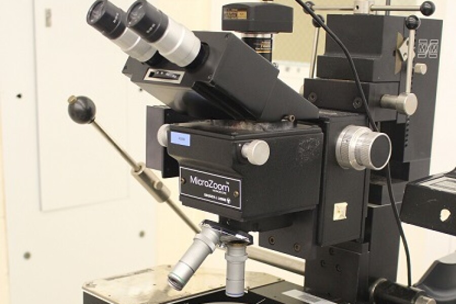 1) The microscope is held by the stand on the left of the probe station. This allows movement of the microscope in x, y, z, and theta.